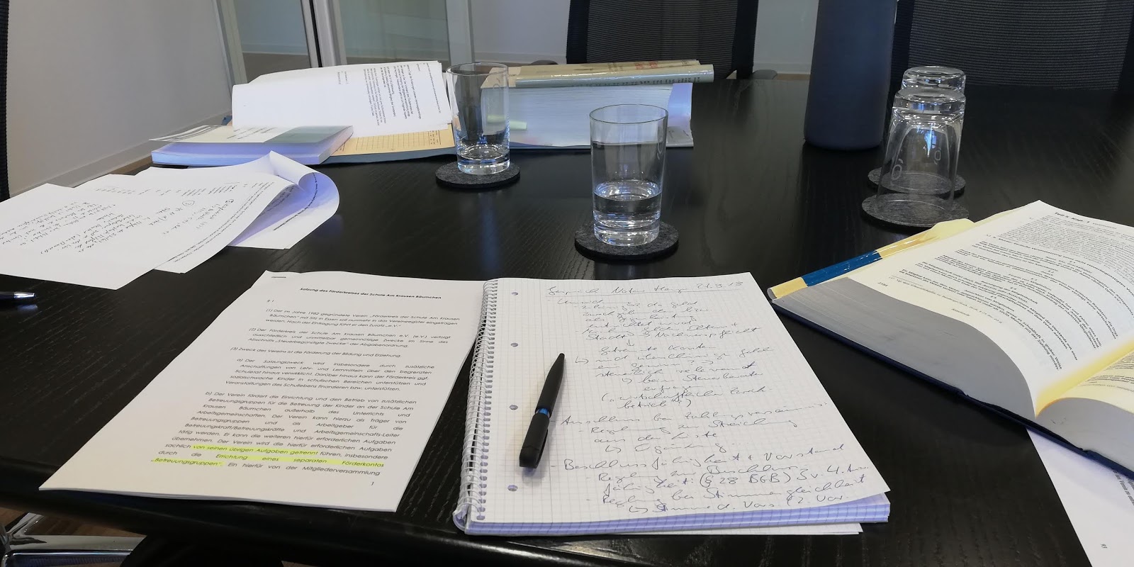 So sah es heute im Besprechungsraum des Notars aus, als der Vorstand sich zur anstehenden Satzungsänderung beraten ließ. Mehrere Punkte sollen angepasst werden, z.T. auf Wunsch der letzten Mitgliederversammlung, z.T. als Ergebnis der Diskussion im Rahmen der letzten Vorstandssitzung.