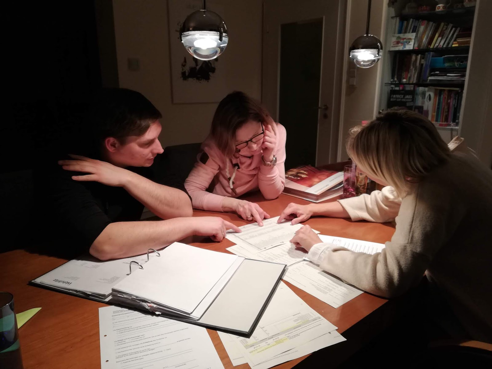 | Kassenprüferinnen und Betreuungsvorstand durchforsten die Buchführung |