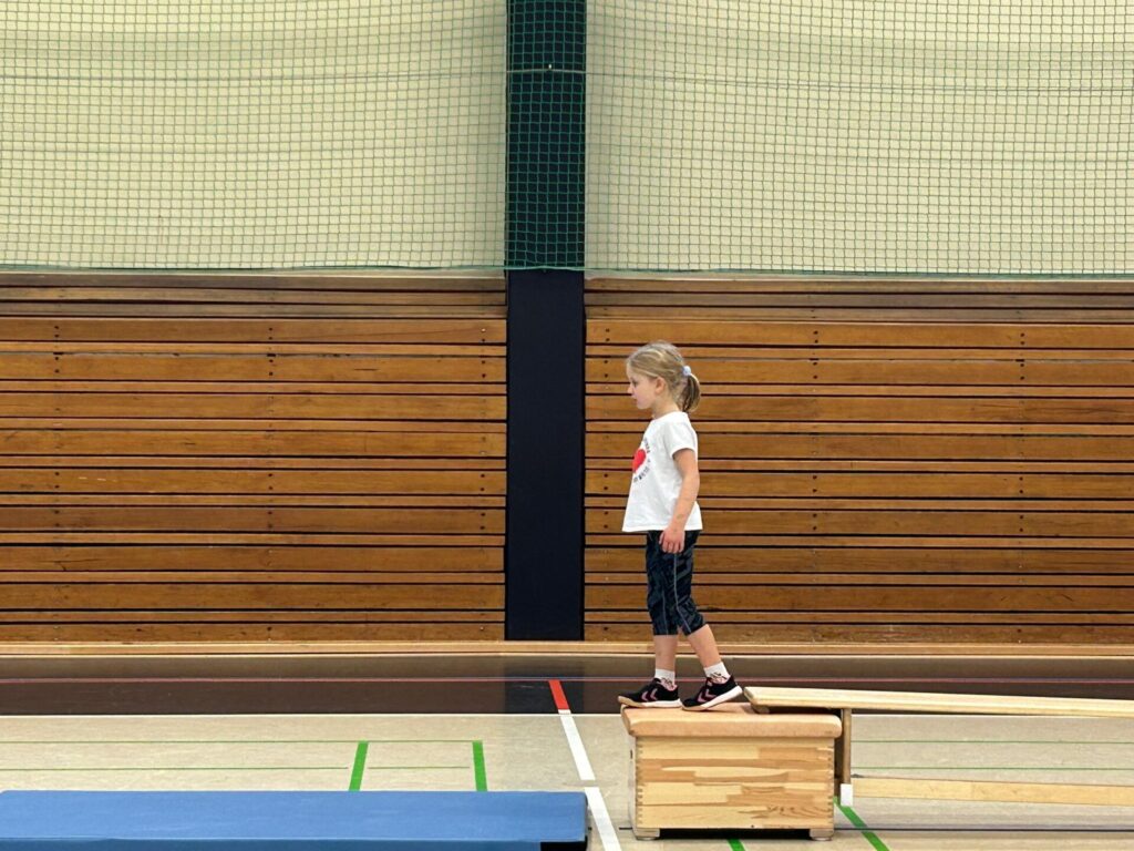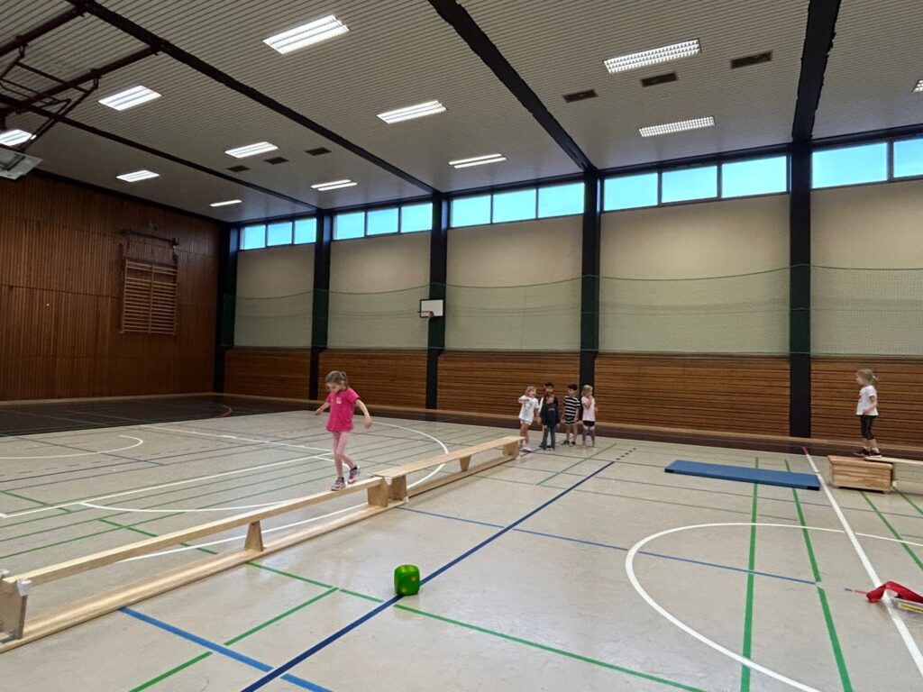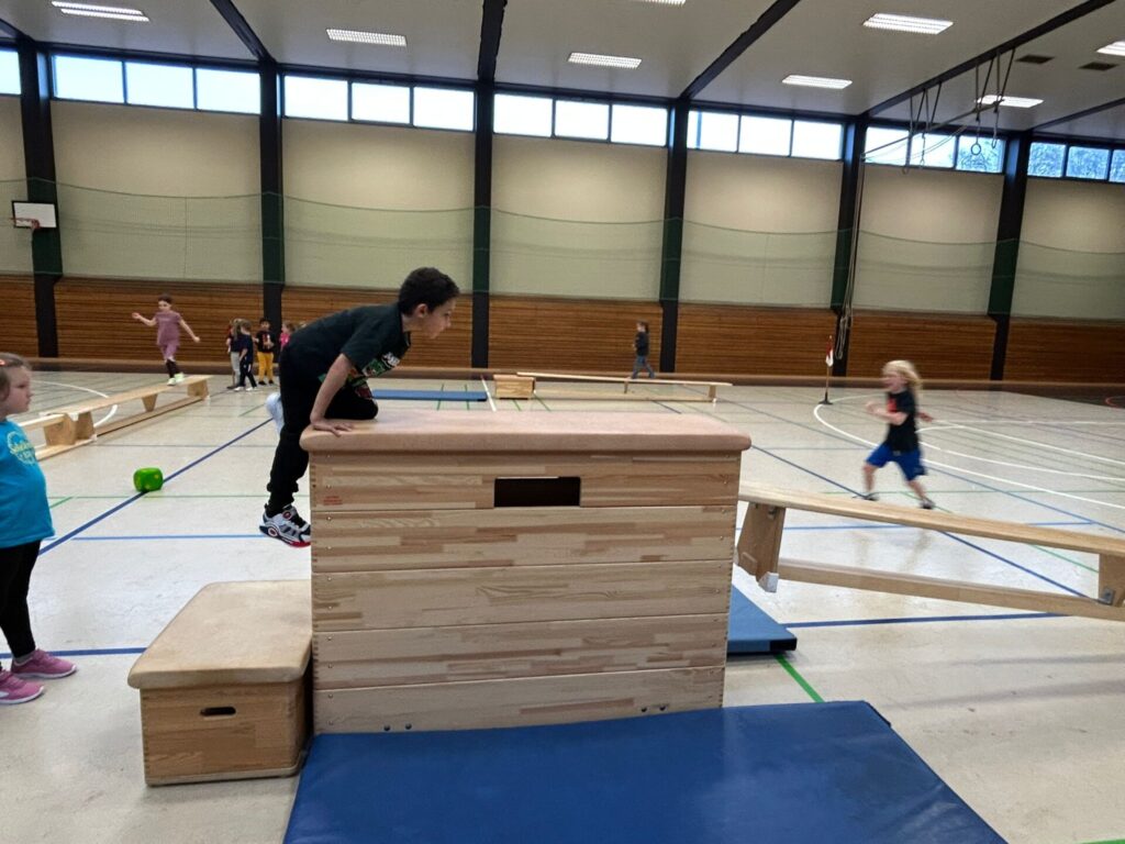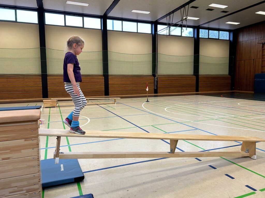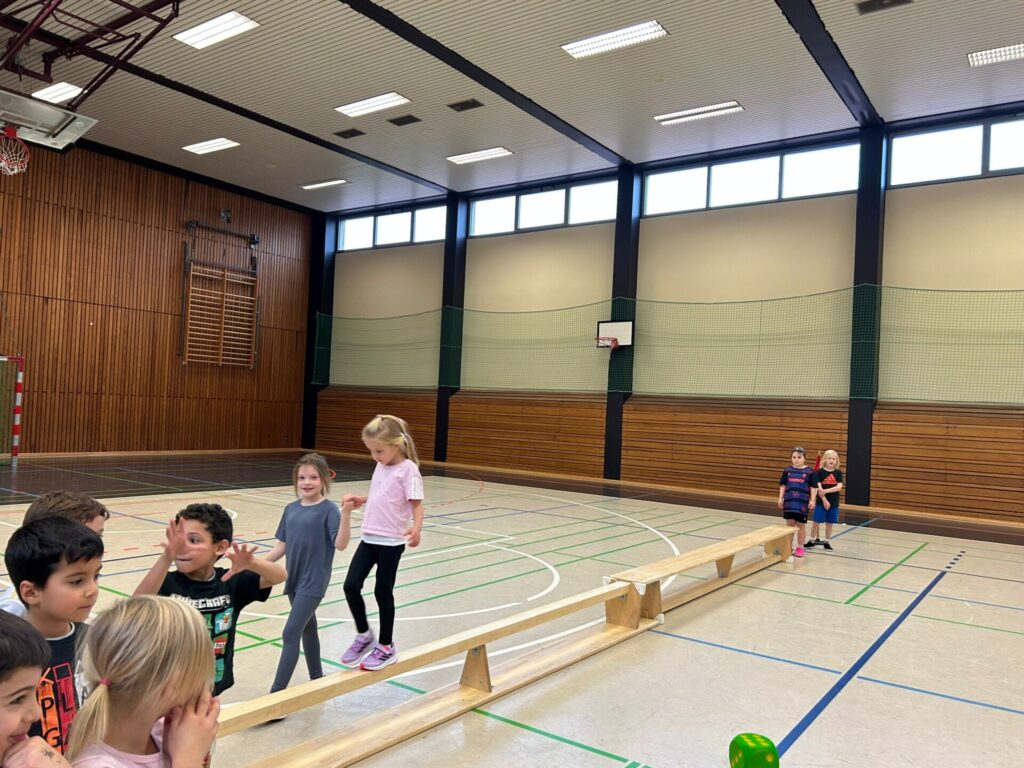 Die Erdmännchen haben tatkräftig als Team eine Bewegungslandschaft aufgebaut und sind mutig über Bänke balanciert und an der Sprossenwand geklettert.