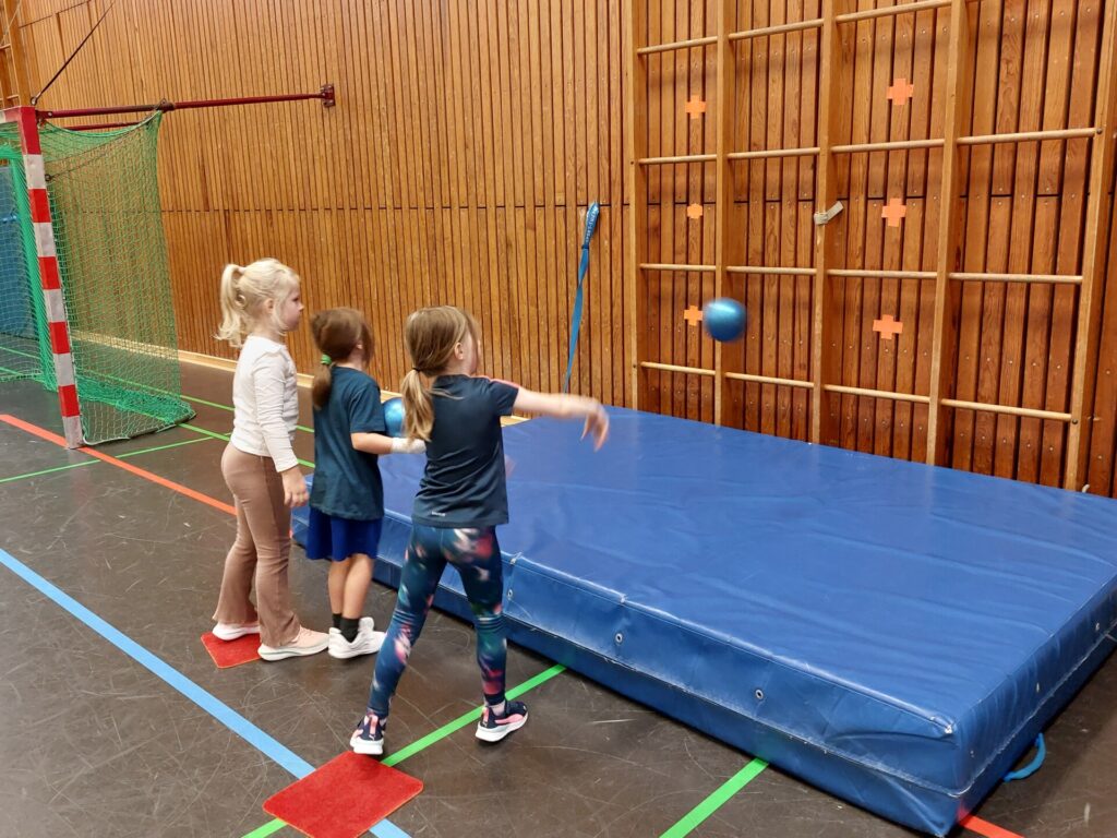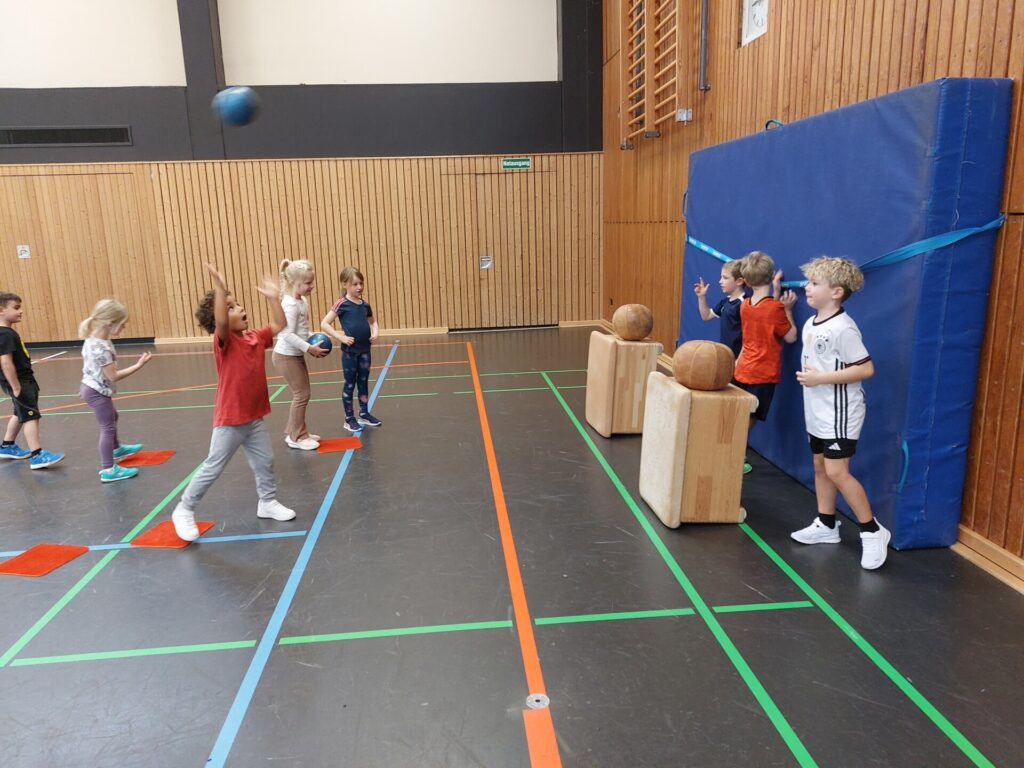 Im Sportunterricht konnten die Kinder der 1b ihre Geschicklichkeit mit dem Gymnastikball unter Beweis stellen. An Stationen durften sie das Zielwerfen, das Fangen, aber auch das Prellen zeigen und verbessern. Das hat sehr viel Spaß gemacht!