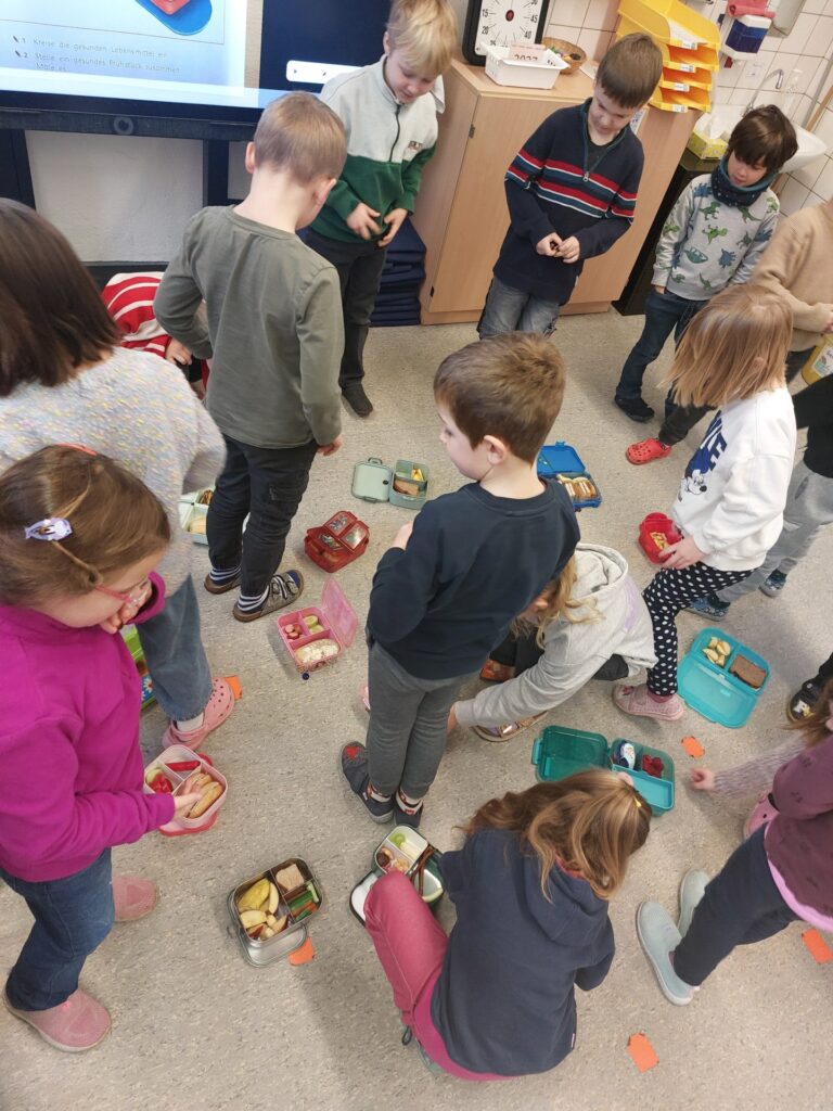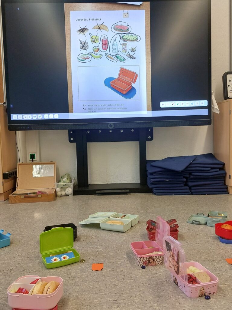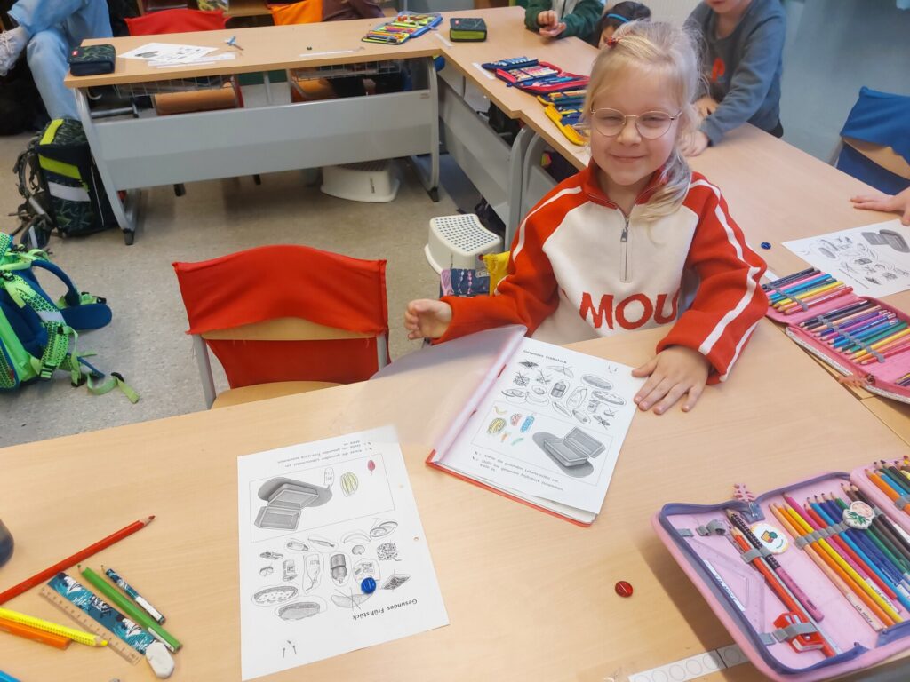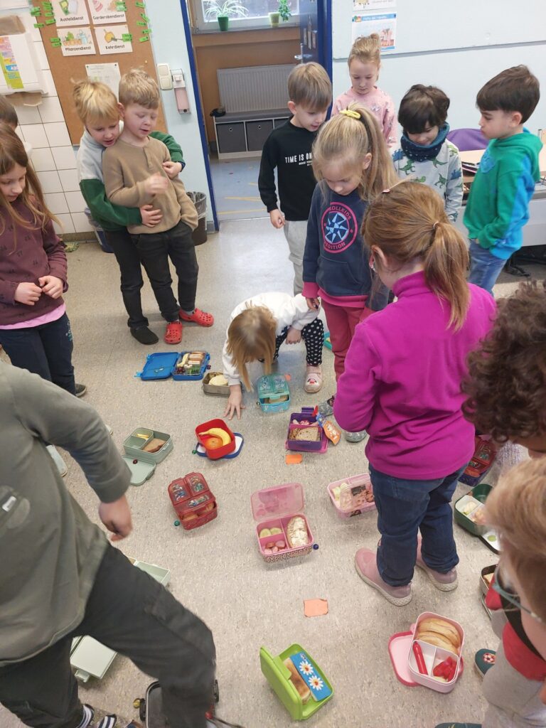 Gesund frühstücken – kein Problem für die Elefanten! Denn wir wissen, dass zu viel Zucker und Fett für unseren Körper nicht gesund ist. So lassen wir die ungesunden Lebensmittel einfach raus aus unseren Brotdosen und wir merken, dass unser gesundes Frühstück sehr lecker ist! Außerdem haben wir gelernt, welche leckeren Obst- und Gemüsesorten es alles gibt. Nun können wir auch sehr selbstbewusst sagen, wie man lecker UND gesund isst!