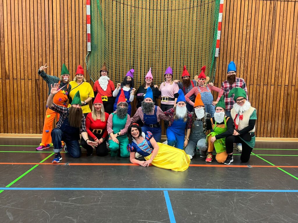 Auch das Kollegium war mit vollem Einsatz dabei: Unter dem Motto Schneewittchen zeigte sich Frau Hillebrand als bezauberndes Schneewittchen, begleitet von ihrem Zwergen-Team. Dieser Auftritt sorgte für große Begeisterung bei den Kindern – und für einige herzliche Lacher.