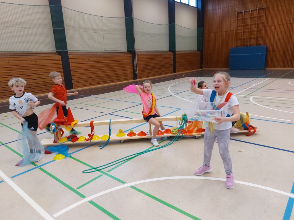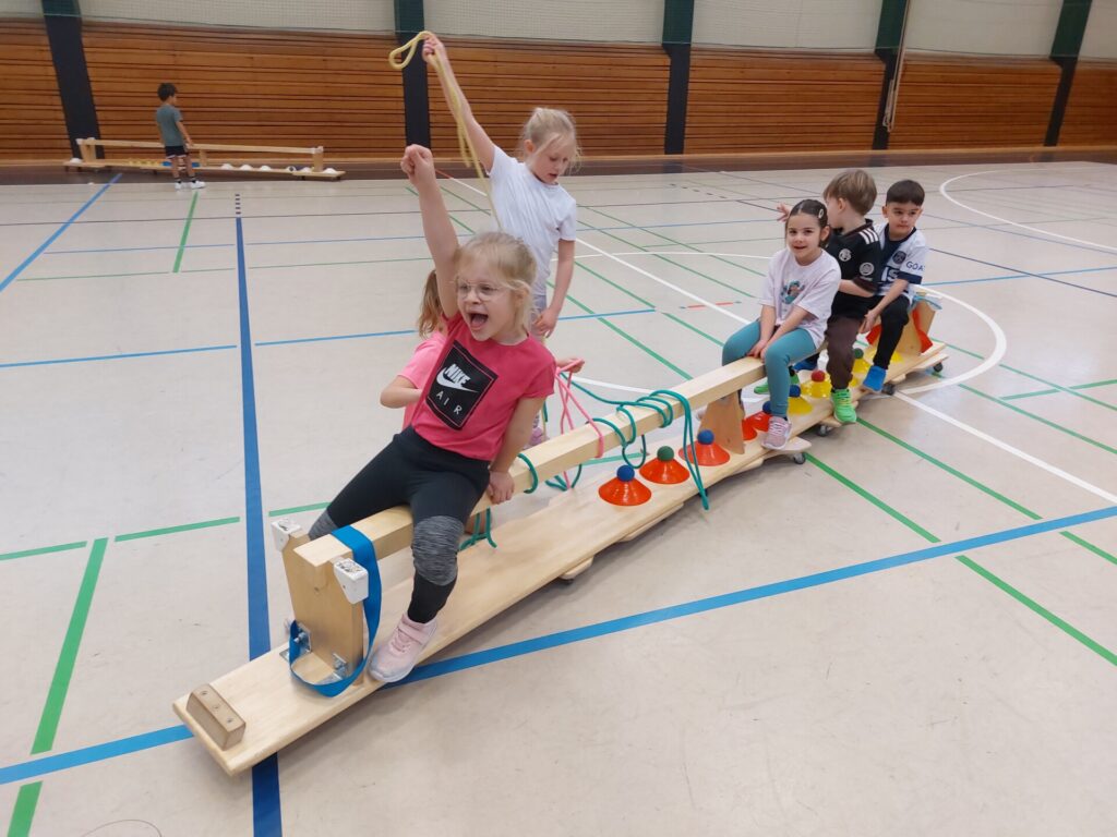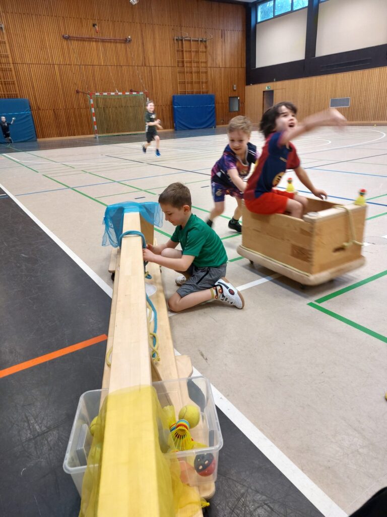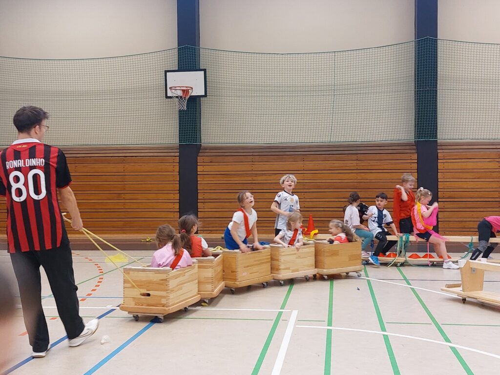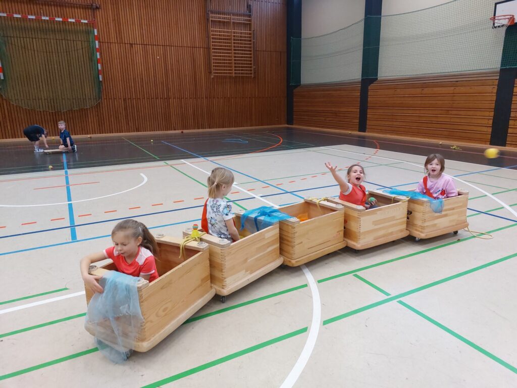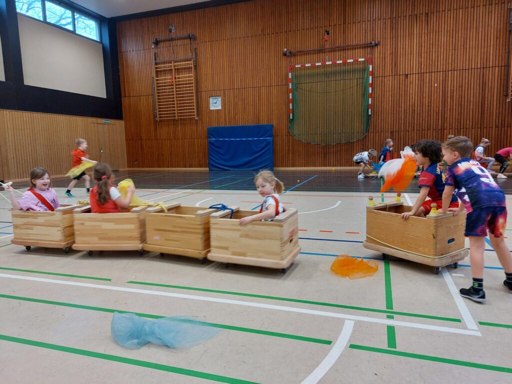 Die kleinen Elefanten durften planen, bauen und fahren wie die Großen – Karnevalswagen fuhren danach durch die Sporthalle – und einen großen Spaß hatten sie noch dazu – Helau!