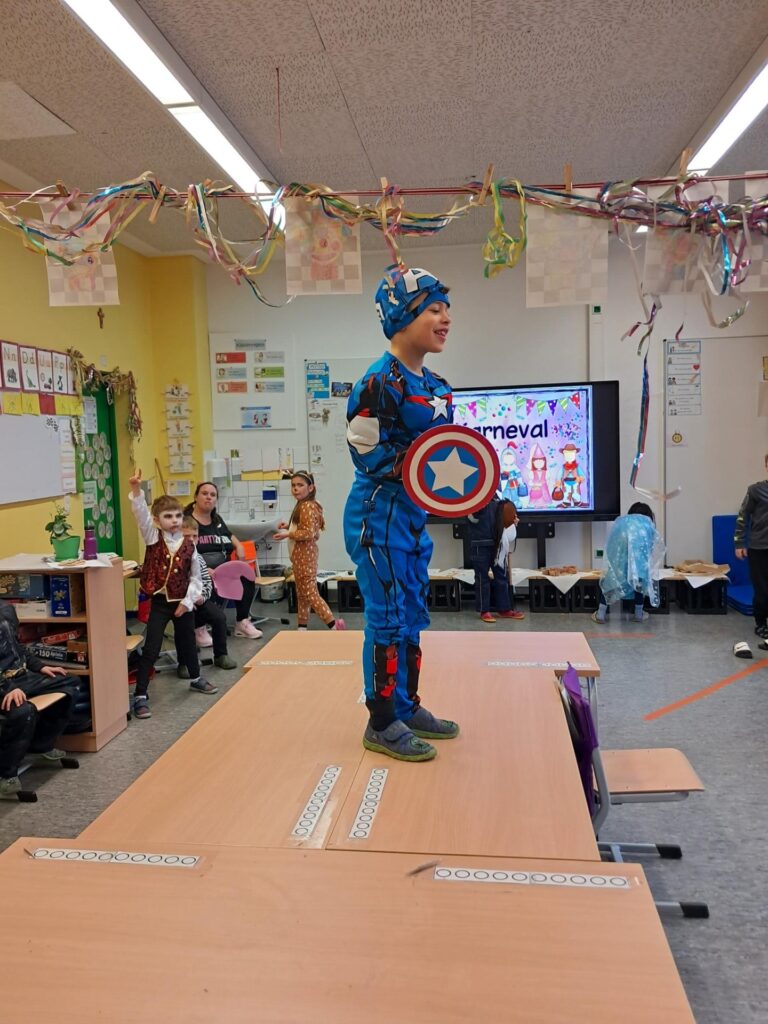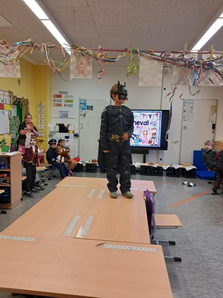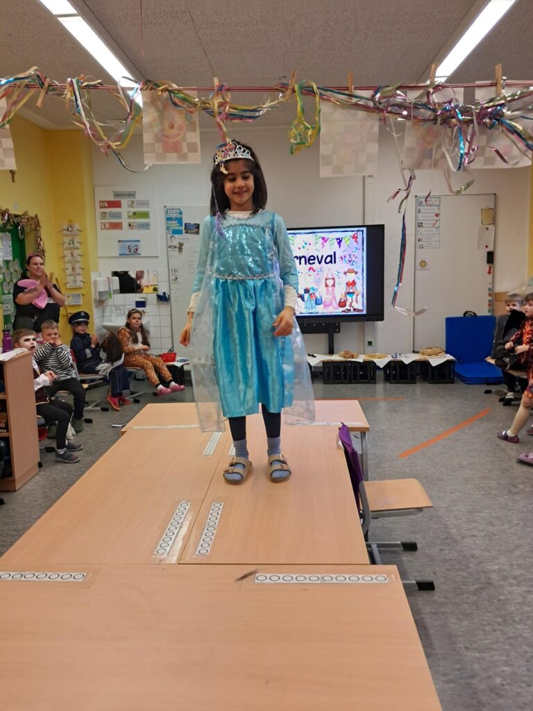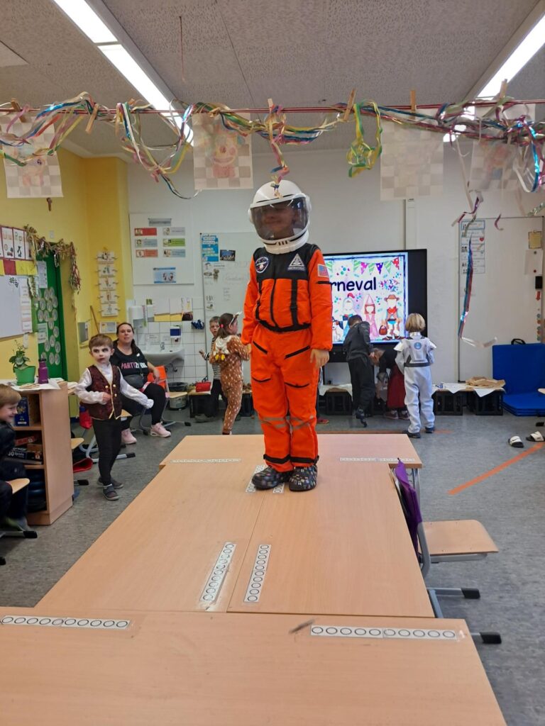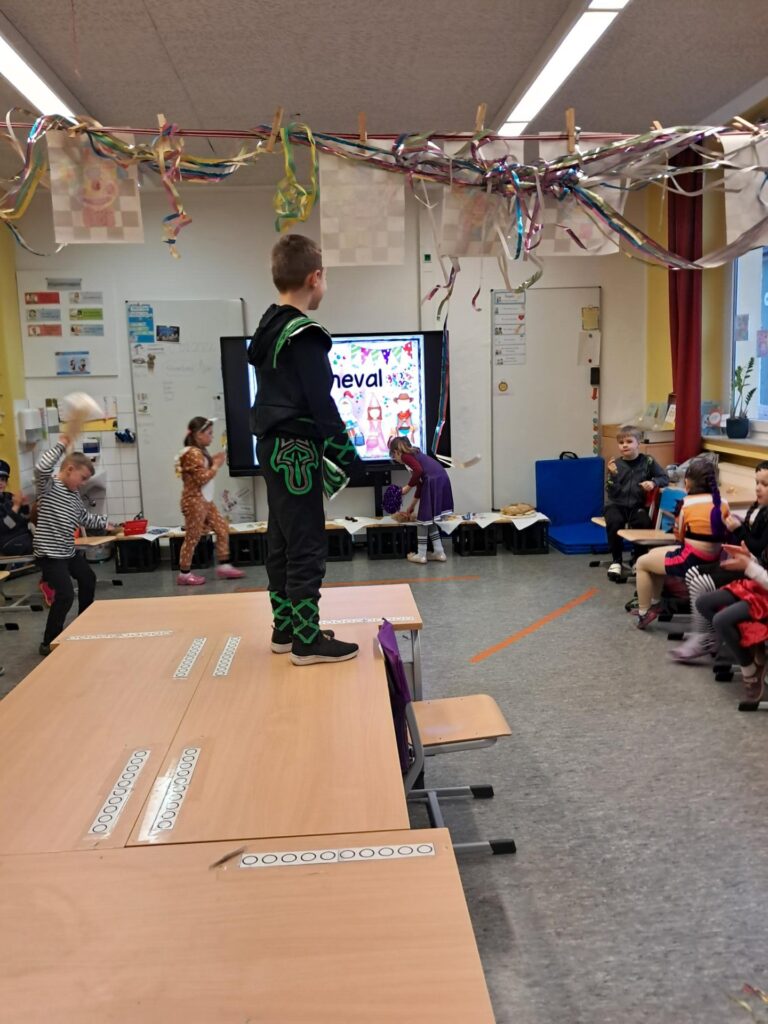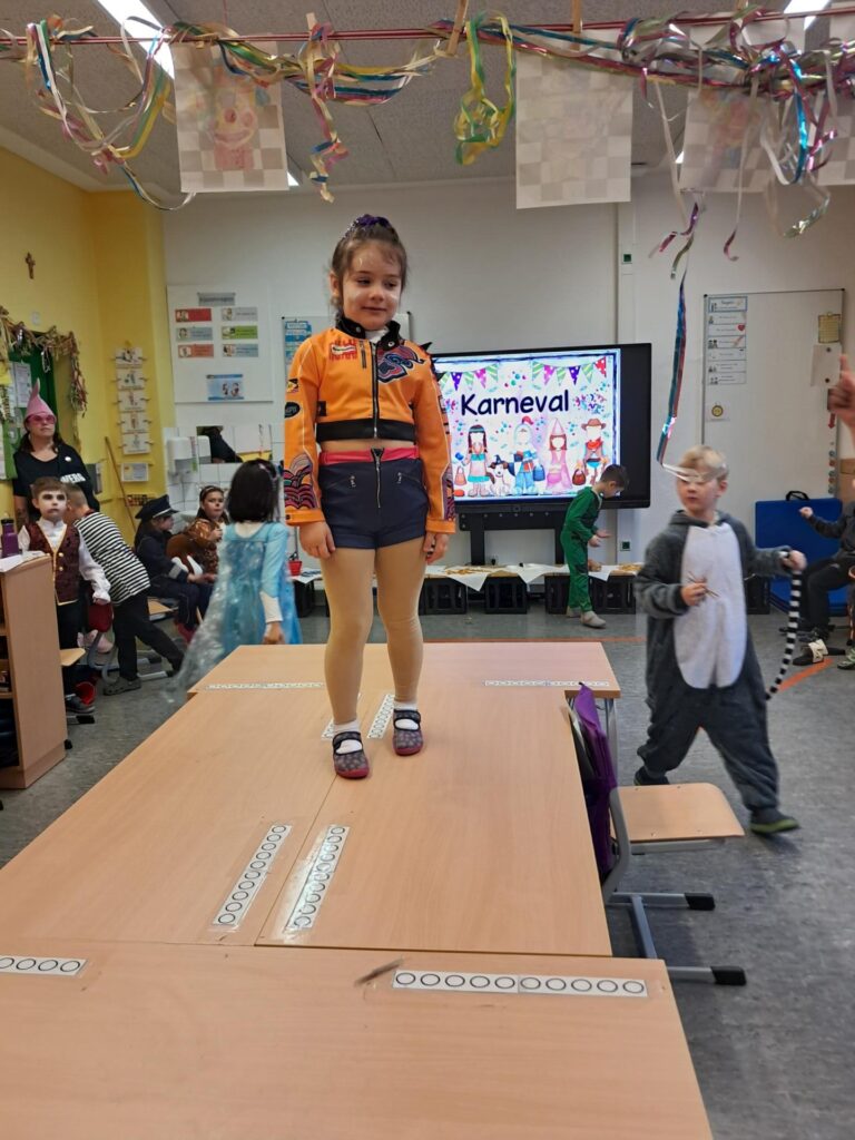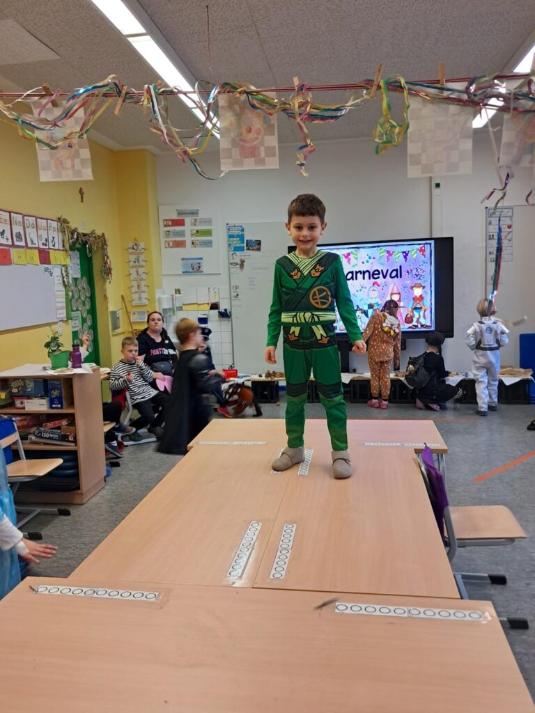 Gemeinsam mit der ganzen Schule feierten wir in der großen Sporthalle unseren ersten Schulkarneval. Anschließend feierten wir gemeinsam mit allen Mäusen im Klassenraum. Wer wollte, durfte sein Kostüm präsentieren. Wir spielten viele Spiele, tanzten und genossen unser kleines Buffet. Mäuseklasse: Helau!